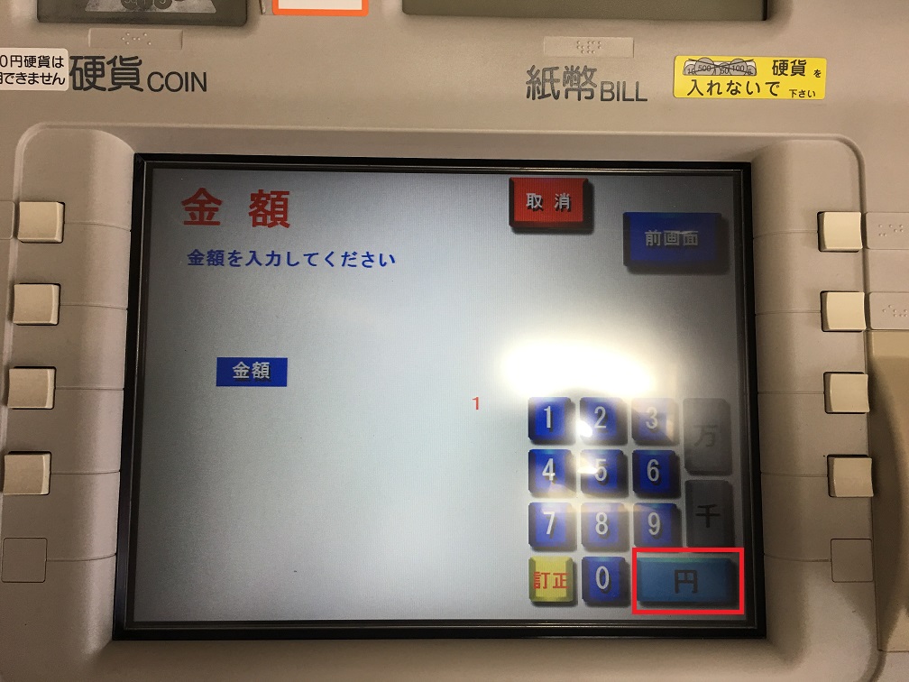 10、输入汇款金额,然后点击「円」